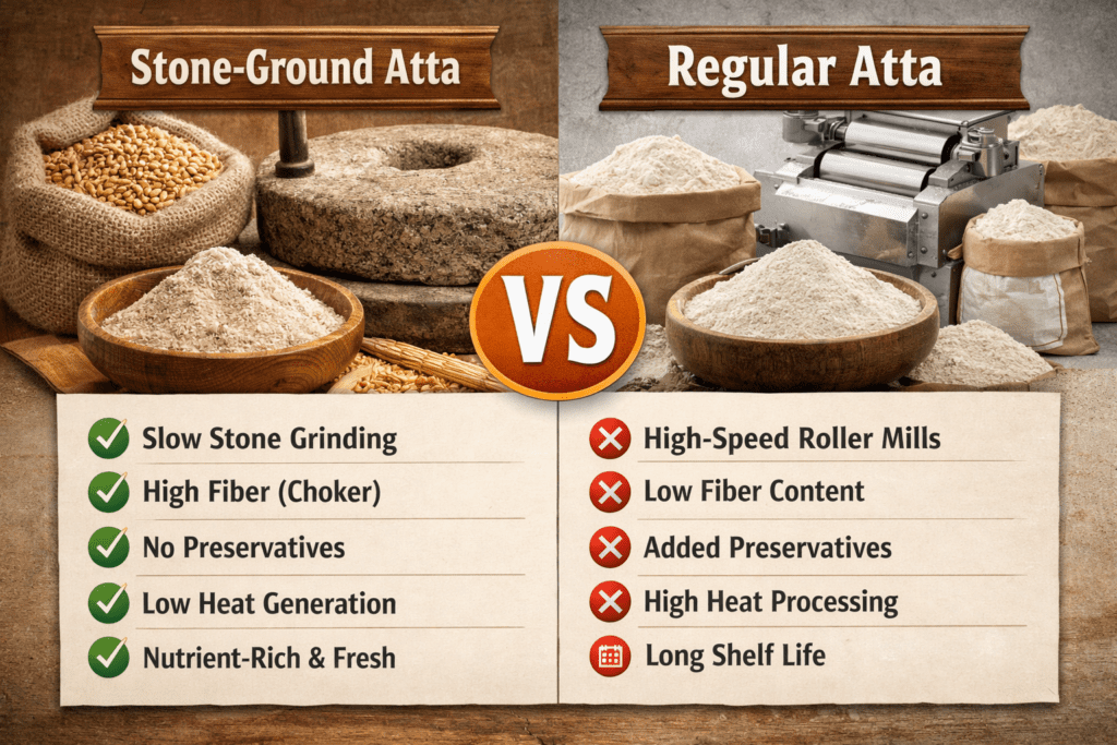 Stone-Ground Atta vs Regular Atta: Which is Healthier? Complete Guide